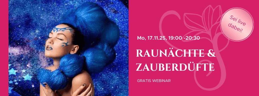 P.S.: Wenn du tiefer in das Thema Raunächte und Zauberdüfte eintauchen möchtest, lade ich dich herzlich zu meinem Gratis Webinar am 17. November 2025 ein. In dem Webinar stelle ich auch meinen 14-tägigen Online-Kurs: Raunächte und Zauberdüfte vor, der am 21. Dezember startet. Es gibt auch ein verführerisches Angebot im Webinar. Sei am besten live dabei, dann nimmst du am meisten für Dich mit 😉. Weitere Informationen findest du hier: https://seelenduft.at/anmeldung-webinar-raunaechte/